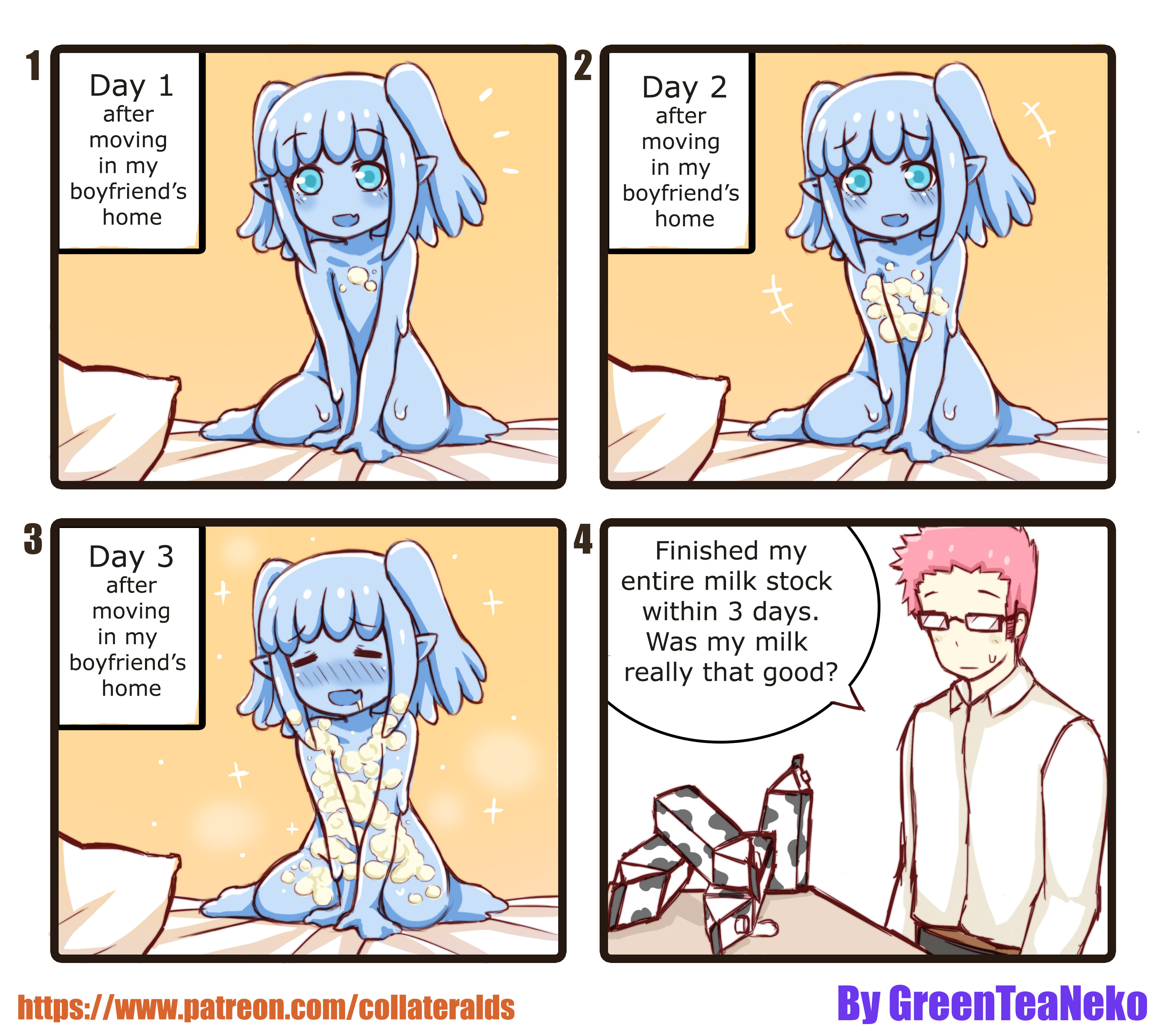 So I am going to post pretty much all of GreenTeaNeko stuff this is the first of the 4 pannel ones some might not make scene because these come after all the main commics that I will post after 9