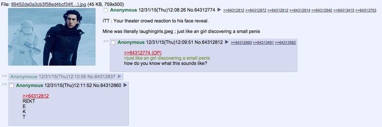I don't know why people were shocked, we knew who was playing him and this photo came out months ahead of the movie, and we knew he would be helmetless in the last fight. What really annoyed me was everyone was like "maybe Kylo Ren is Luke", he's way too tall for one thing, but the main problem is that just checking the ******* imdb page or being the least bit informed would have destroyed that theory. Idiots.