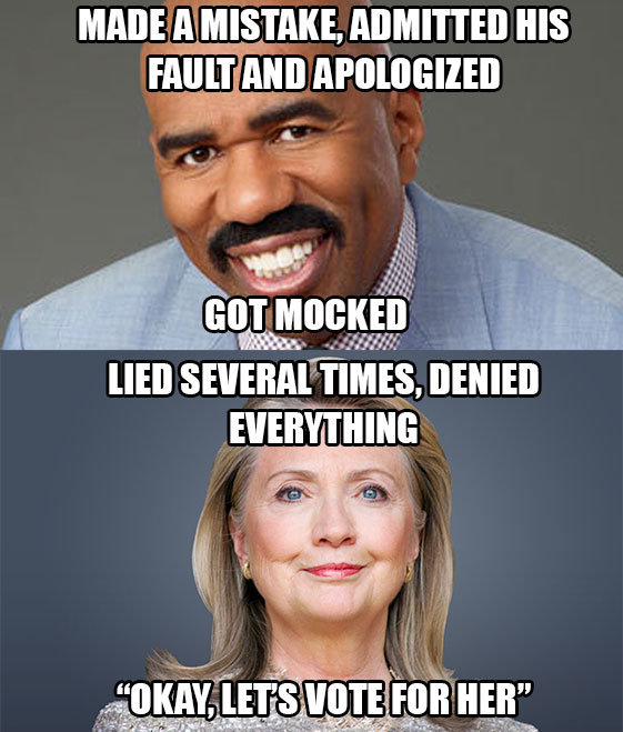 I feel that, to some degree, most people just vote for Hillary because they think she's less ******* insane than Trump. Around 80% of people know that there's no optimal choice this time and just have to choose the lesser of two evils, whether they believe that is Trump or Hillary.