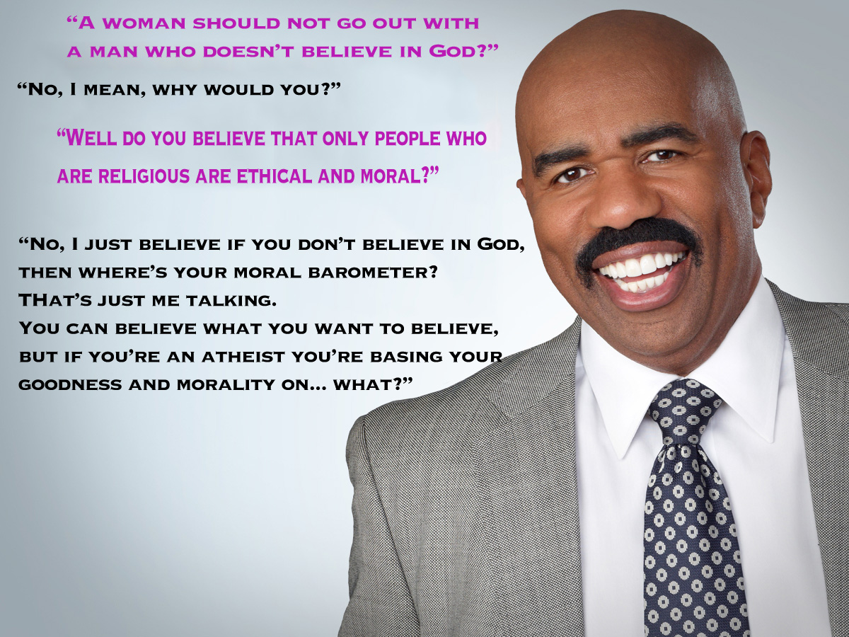 Thank you for sharing all of this information. I always like Steve Harvey but after this, what an ignorant, uneducated, and stupid thing to say about atheist and non-believers in general (agnostic here). Those clips of him just make my blood boil. How can someone like that still be allowed on television? I've never heard him say this before, how disgusting.