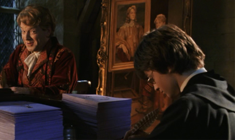 Student misbehaving (some theorise that he is swearing in either spanish or russian) so his classmates throw their bookbags at him to shut him up.