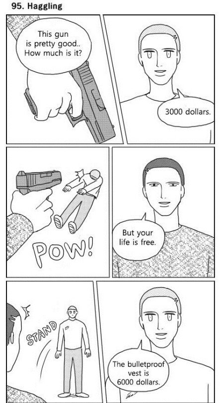 "if you're shot, the bullet will fall to the ground after touching you, and you will be able to release the equal amount of force into whatever else"