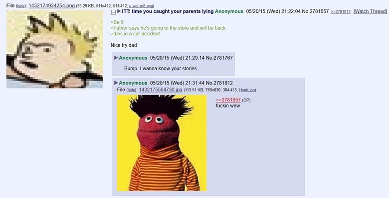 L-) F ITT: time you caught your parents lying Anonymous 05120/ 1 5 (Wed) 21 [Watch Thread]