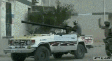 That's what we call a 'technical' mounting a recoilless rifle, and from the looks of it, I'd assume one of three things happened.