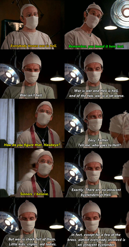 How do you figure that, "Hawkeye? ," dlet who goes to Hell?