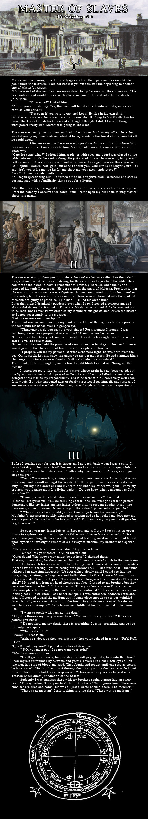 the Syrian was on my mind. I prayed to Zeus he would not be killed. I knew Master