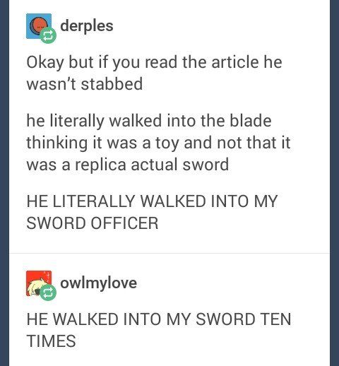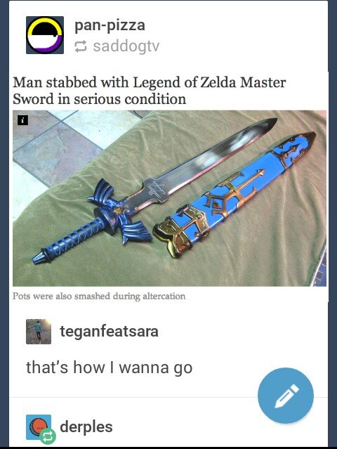 Man stabbed with Legend of Zelda Master