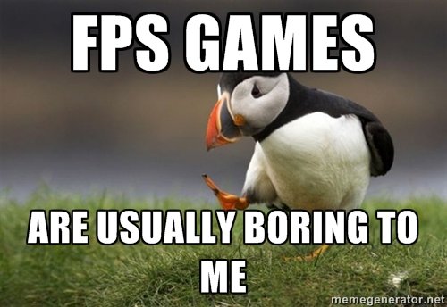 Talking about boring FPS games. I just started playing F.E.A.R. and its one of the best ****** first person shooters ever. Its incredibly just how intense the combat is in this game. Thats mainly because it has the best enemy AI i have ever seen. These ************* are so coordinated and smart that they know how to hide, flank, retreat, rush, flush out with greanades and so on according to the situation. Its ridiculous.
