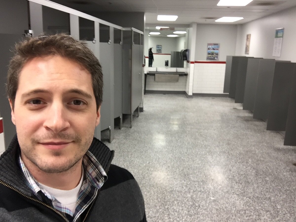 I don't understand the point of this.. Am I to be surprised that the bathroom is empty? Or is it that this dumb ass doesn't like star wars so he goes to take selfies in the bathroom.