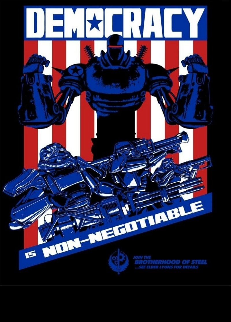 Anyways, morals in the Fallout universe don't work the same as they do here. To them, they are morally correct in using any lethal force necessary to keep dangerous technology out of the hands of non-Brotherhood. To them, they are keeping it in-check and will use the technology sparingly, like with Liberty Prime. I haven't played Fallout 4 yet, so I don't know their deal there.
