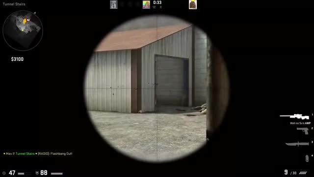 You see he messed up when he didnt use the awp to shoot through the wall when he poked his gun out like a moron, giving the awper a very good idea of where his head was. Tsk. Silver players.