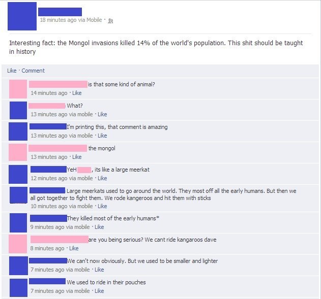 To put it short, things like the Romans and Greeks get glossed over in weeks in schools here. The Mongols are no exception. So don't get disappointed when we don't know about your random and useless trivia, you cocky **** .