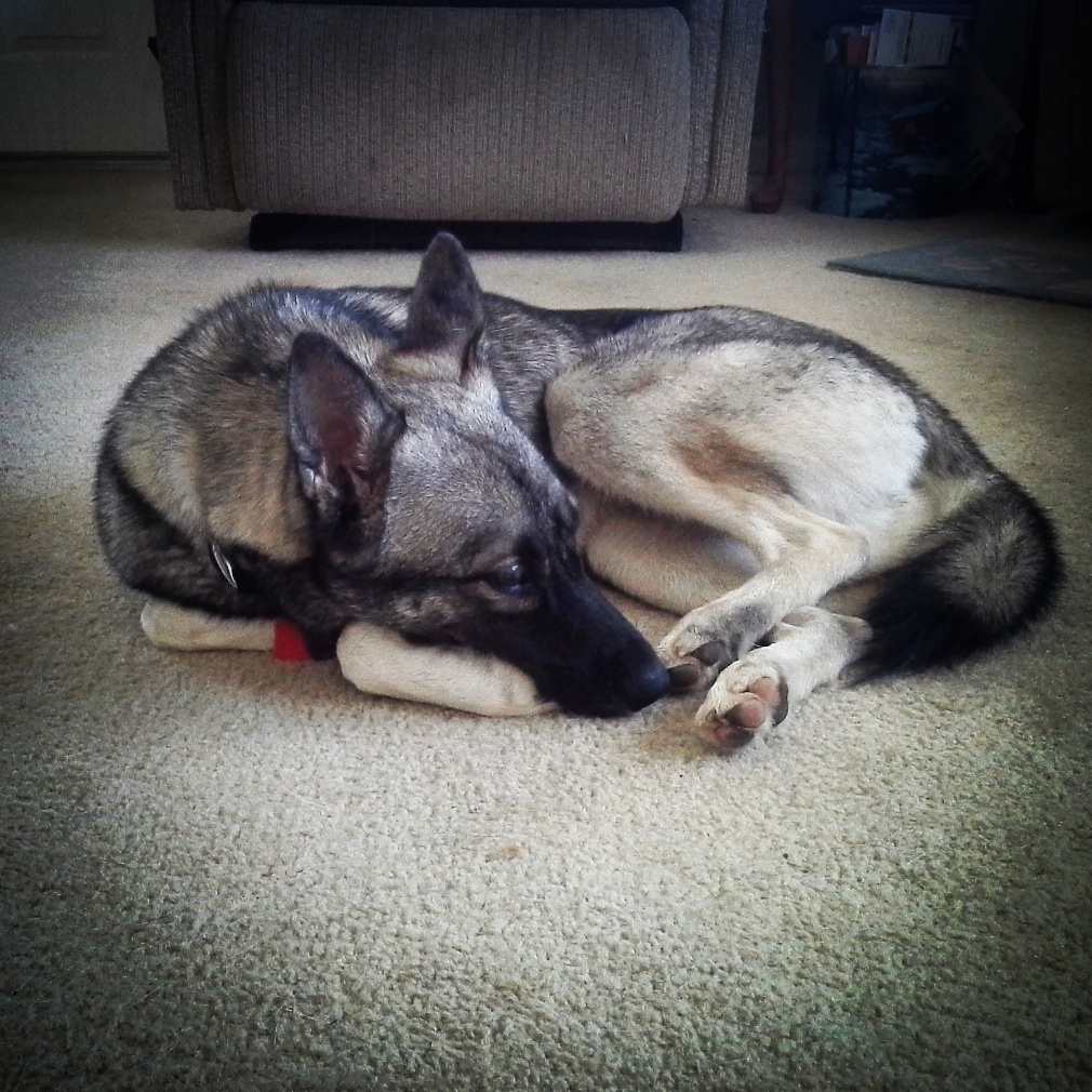 You know I wondered if she might be! If she was a Sable GSD, she definitely had an off-standard look to her but it was hard to tell with her curled up like a donut. : P