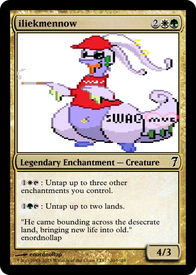 If there is any interest I could try to make a magic: the gathering comp of some users, some famous and some not. I promise that sometime or another if you request a card made that you will get one made for you.