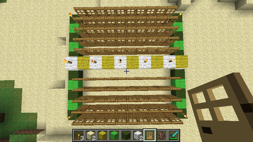 Different color on each floor so I can tell what floor i'm on. Only have it finished on the first floor though. The interior is really **** , I've mostly been working on expansion. I'm aiming for it to be at the build limit while also going all the way down to bedrock.