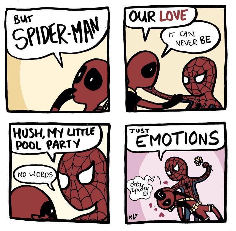 Telling me that we would the greatest tag-team oil wrestling fighters of all time before greasing up and attempting to "pin" me does not make us lovers, Deadpool!