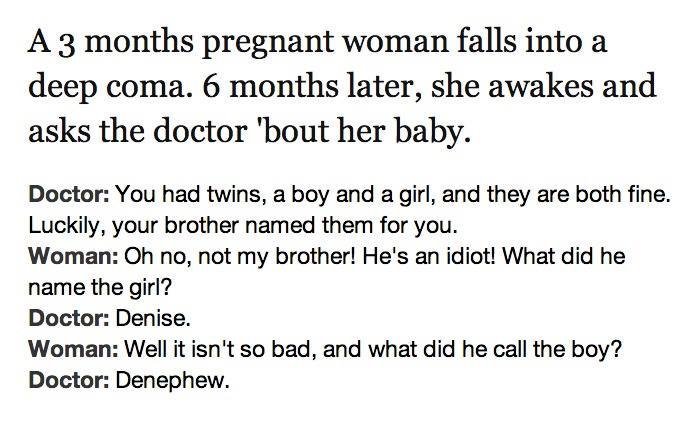 Doctor: You had twins, a boy and a girl, and they are both fine.