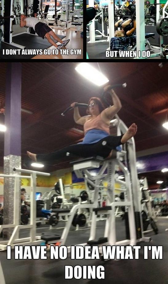I've been going to a gym now for about 4 months, I had no idea how to do most of the stuff they had in there. I asked questions and watched other people. We all got to start somewhere, though that last one is utterly ridiculous.