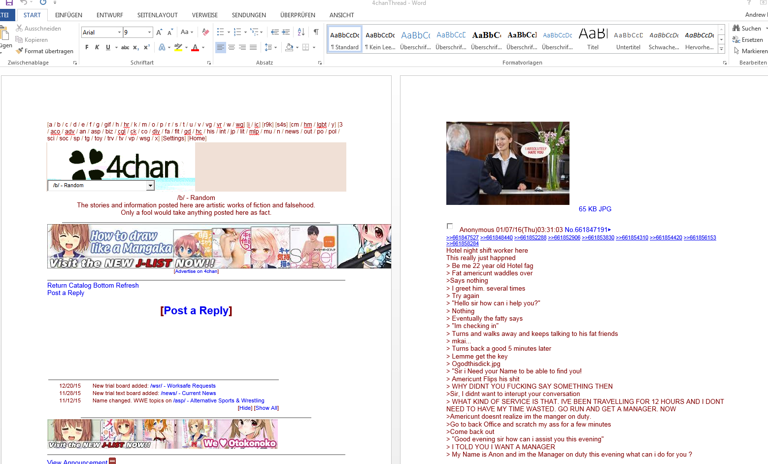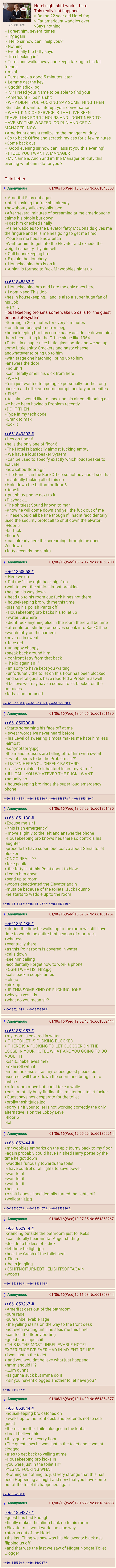 I have worked in customer service and it is all the same **** . People come in, blame you for **** they caused, scream at you, demand to speak to the manager, demand free **** . Having experience in hotel customer service wouldn't make this gold. It was extremely predictable and generic. The noisy, fat American in Europe is nothing new, and while this was an amusing story, it didn't really do anything spectacular.