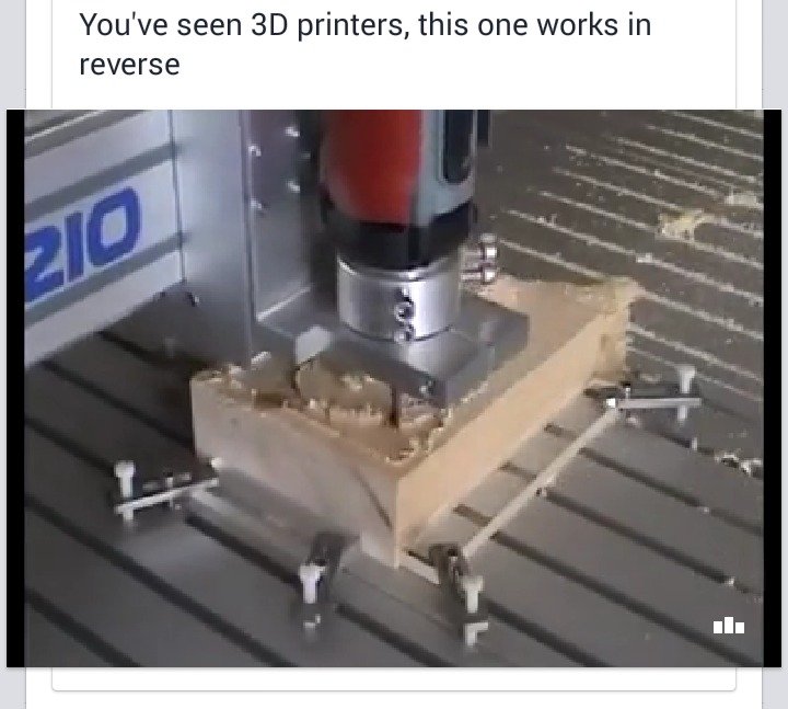 I mean I guess it technically is reverse or the opposite of 3d printing cause like olinerocks pointed out its a CNC milling machine which does subtractive manufacturing where in you take away from a material say wood metal or wax to get the desired shape and 3d printing is additive manufacturing where in you add the material until the desired shape is met. so technically hes not wrong in saying its the reverse or opposite of 3d printing but it still sounds odd.