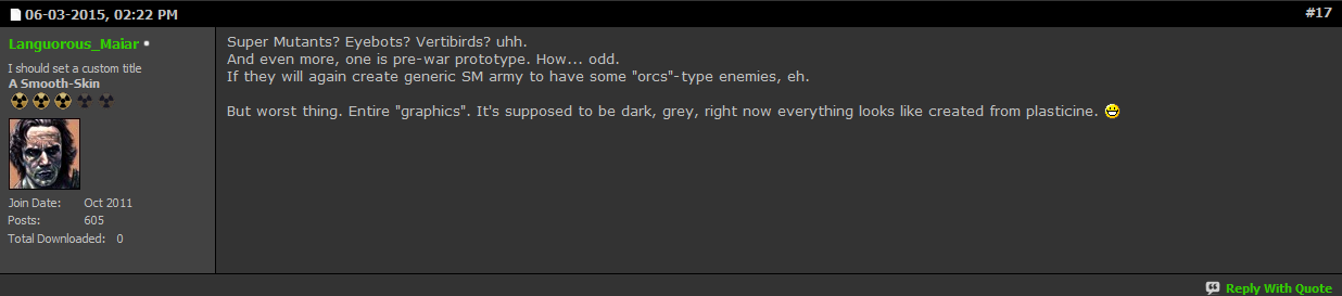 All you do is whine and complain about everything that Bethesda does. All the way from graphics to even including Fallout elements in the trailer.