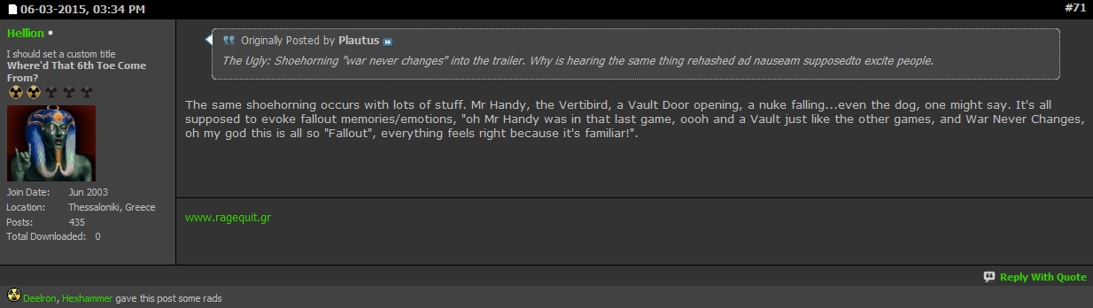 Today's thread: the Fallout 4 trailer announcement post, 3rd June, 2015.
