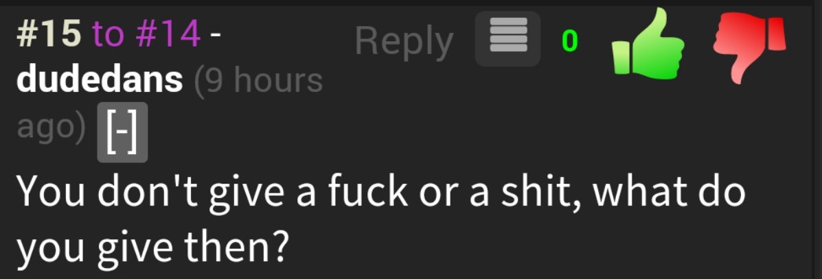 No Shits,No Fucks Only Damn's Flag fwp (See more...) prev next random - Fav Favorite Comment ✖ PrevTop NextComment (Enlarge) (Enlarge) (Enlarge) (Enlarge) (Enlarge) prev next Tags: funny | Not funny | fail | Stupid | epic | comments | Junk | FUNNYJUNK | replies | replying -2 Views: 723 Favorited: 0 Submitted: 01/06/2016 Share On Facebook -Favorite +Favorite Unsub from fwp Subscribe to fwp