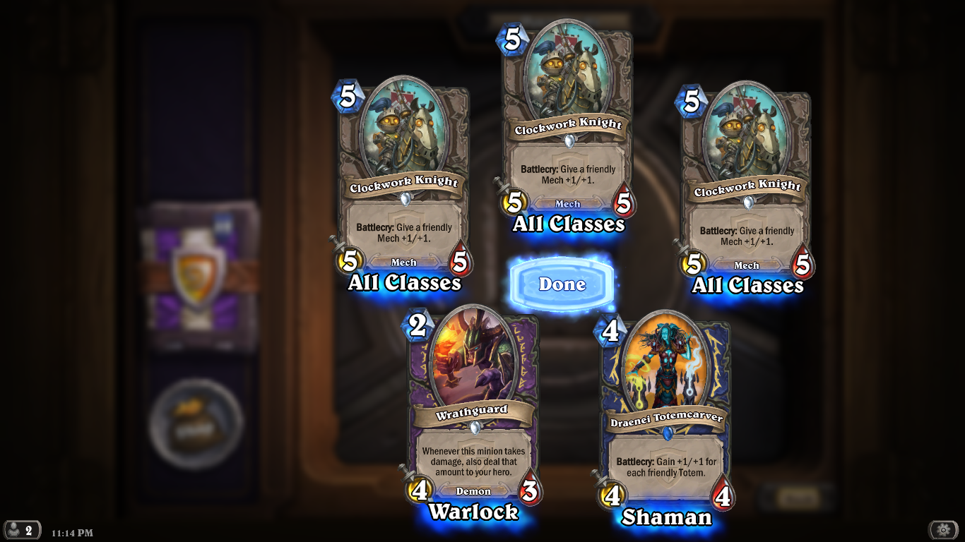 3 here, two ******* illidan one high priest velun - dusty dusty - though one of the illidan was golden so helped me finish a couple of decks that needed blues.