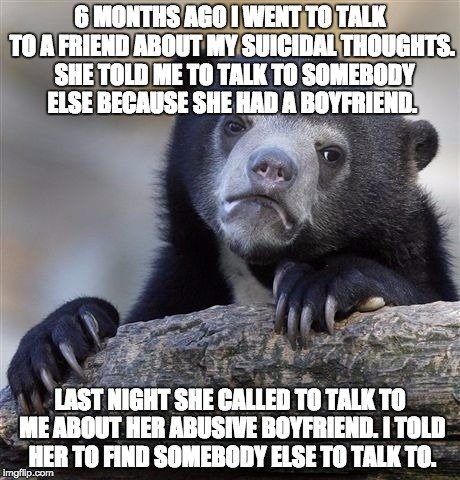 You know what, I 100% agree with you OP, even if this is fake possibly, If at my most vulnerable, asked a friend for help, and they turned me down, they would be on my **** list until death(unless they make it up to me). They would be about to be killed by the skeleton lord in the skeleton wars, And I would say "So now when YOU need help, I need to pay attention? Well **** you too"