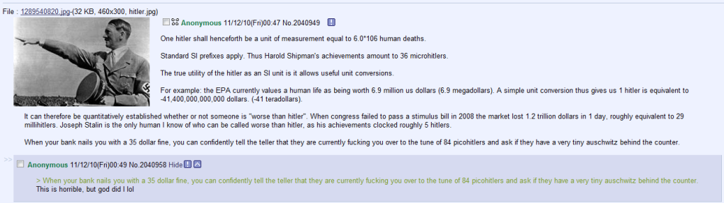 Forgive me for saying you don't know what you are talking about. How can you describe something so similar to what hitler did (He didn't only target the Jews and let's not forget his medical experiments that have ever so advanced us.) and even hint to it being worse than what he did. **** the numbers, those experiments are ****** up. The Jews killed Jesus
