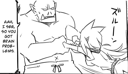 The best part of the series is how it parodies common tropes. The Elf is the one really up for sex and the big strong orc just doesn't give a **** . The hero comes to save the princess from the evil orc but he's a little kid who gets his ass handed to him and dies in one hit. Hero's monomyth-style magical aid is a young lady instead of an old man, and is yet another filthy perv.
