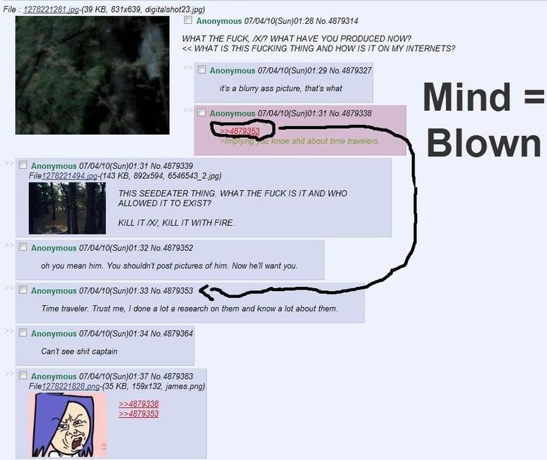 The order of the posts is such that the anon on top replied to the guy below him. The problem here is that he "guessed" the exact post number and subject of the post 2 minutes before the other anon posted.