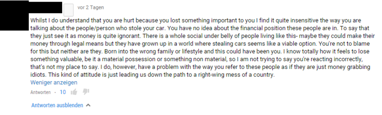 talking about the mo ple/ p ers on who stole your car- you have no Idea about the financial position these pep pie are in. To say that