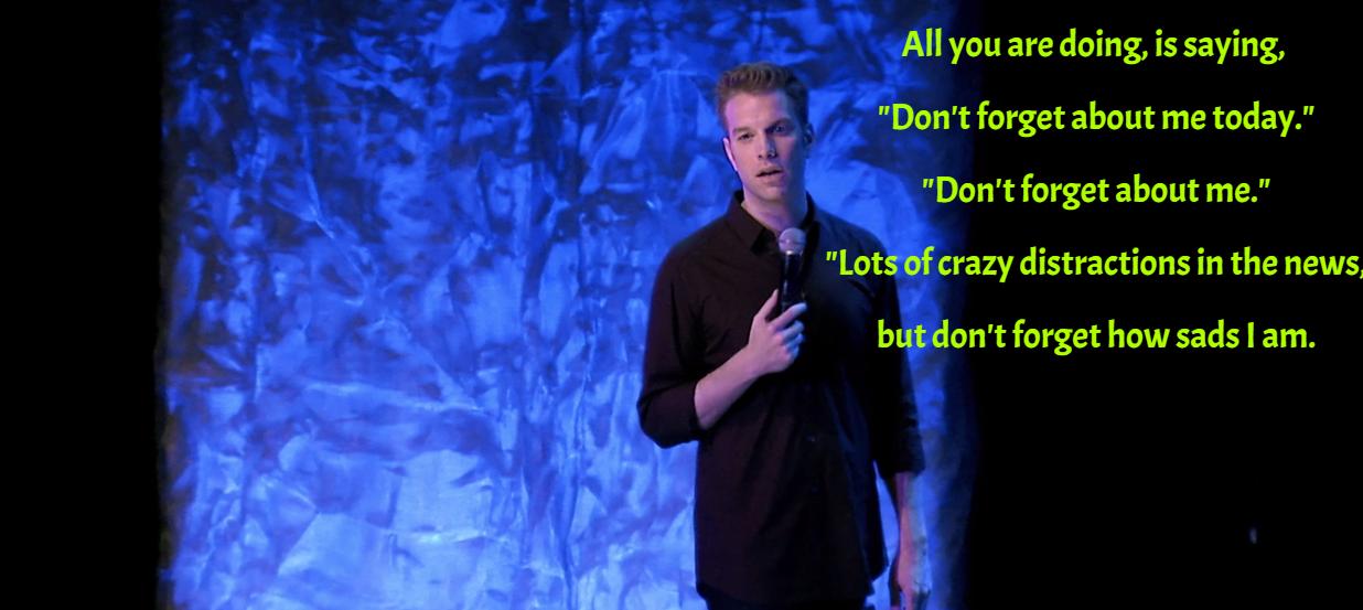Those that post on social media saying "My thoughts and prayers are with you" are really saying "I know everyone's concerned about the big tragedy, but don't let it distract you from me. You should still give me attention."