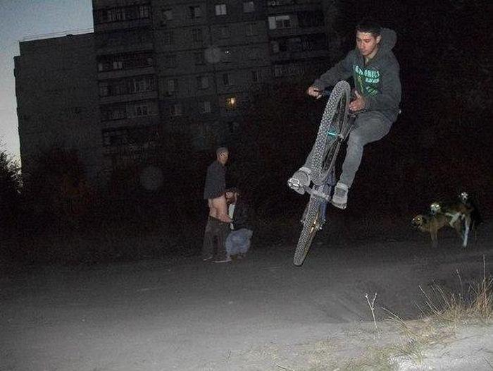 in a let while the kid staes a sick wheelie but wlse there
