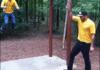 One time I was chasing my dog around my yard with a wheelbarrow, when the wheel guard on the front dug into the ground, stopping the wheelbarrow immediately. I did not stop so quickly, and ran straight my stomach into the handle of the wheelbarrow so hard that it lifted me into the air.
