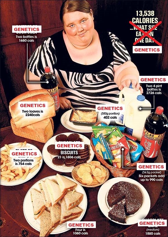 one time i saw this woman boast about how she was fat because of genetics and when the waiter came over with her food the guy she was with took that plates and said "Here's you genetics" things that didn't happen for 500 alex