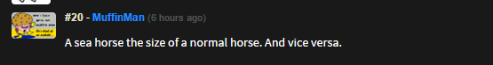 Yea, the sea horse sized horse looks terrible, but at least the horse sized sea horse worked out, and it's the funnier of the two