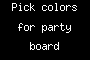 Pick colors for party board By: anon prev next random - Fav Favorite Comment ✖ PrevTop NextComment paletton.com/#uid=1000u0kllllaFw0g0qFqFg0w0aF pick a color theme for the party board and paste link in comments prev next +12 Views: 2117 Favorited: 0 Submitted: 01/05/2016 Share On Facebook -Favorite +Favorite Unsub from admin Subscribe to admin