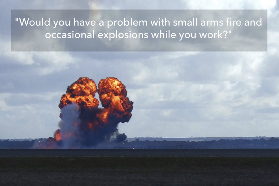 It seems likely to me that it was simply an engineering development center where they might test weapons. I feel like that would have some measure of sound-proofing, but they'd definitely have to alert employees so they don't arrive the first day, hear an artillery shell detonate, and lose their **** about something awful being about to happen.