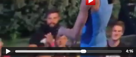 Yes, it was staged. The guy is wearing skin tight skin colored pants. Not to mention the fact that the announcers are pretty poor actors, along with the fact that the guy so easily got to the stage without anyone stopping him.