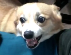 If anyone is curious, look up German Shepherd protection training videos. They are intense, but you don't see any flash of teeth. Properly trained dogs treat the experience as a game or a hunting experience, not a show of power. That's why they'll release and attack on command, because it's a game. Now, Rotties meant to protect the trash yard are different. Since the corgi is obviously in a household, you want him or her to be properly trained, not stupidly trained.
