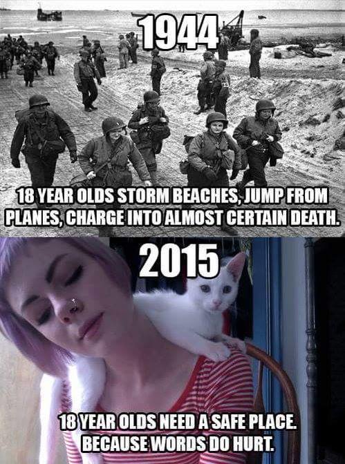 The comparison above is moronic anyway because, as far as I remember, those 18 year olds going to war was not praised as a good thing.