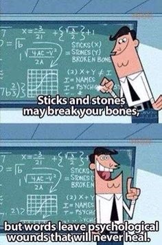 Unless you are some kind of robot, at some point in your life, someone has said something to you that really hurt your feelings. Dont act like people cant **** you up with words.