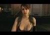 Her lungs and basically every vital organ was burned to a crisp because of Snake during the first mission. So now she breathes and drinks through her skin, and basically rainstorms are like complete bliss to her.