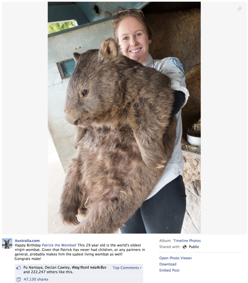 Happy Patrick the Wombat.? This " year old is the ' t oldest Shared with: Public