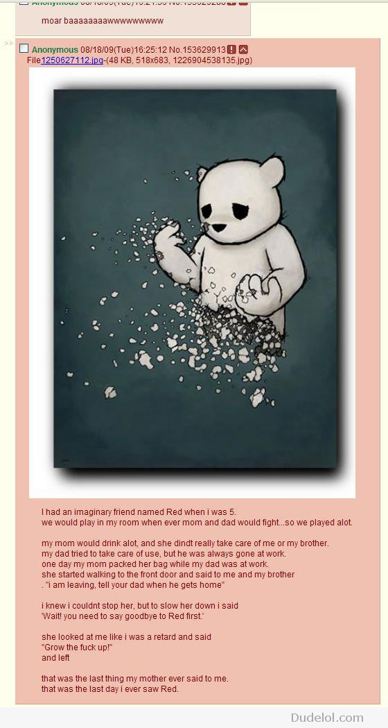 Tags: 4Chan | red | Bear | feels | Fight | goodbye | leaving | imaginary | friend | drink | dad | Mom