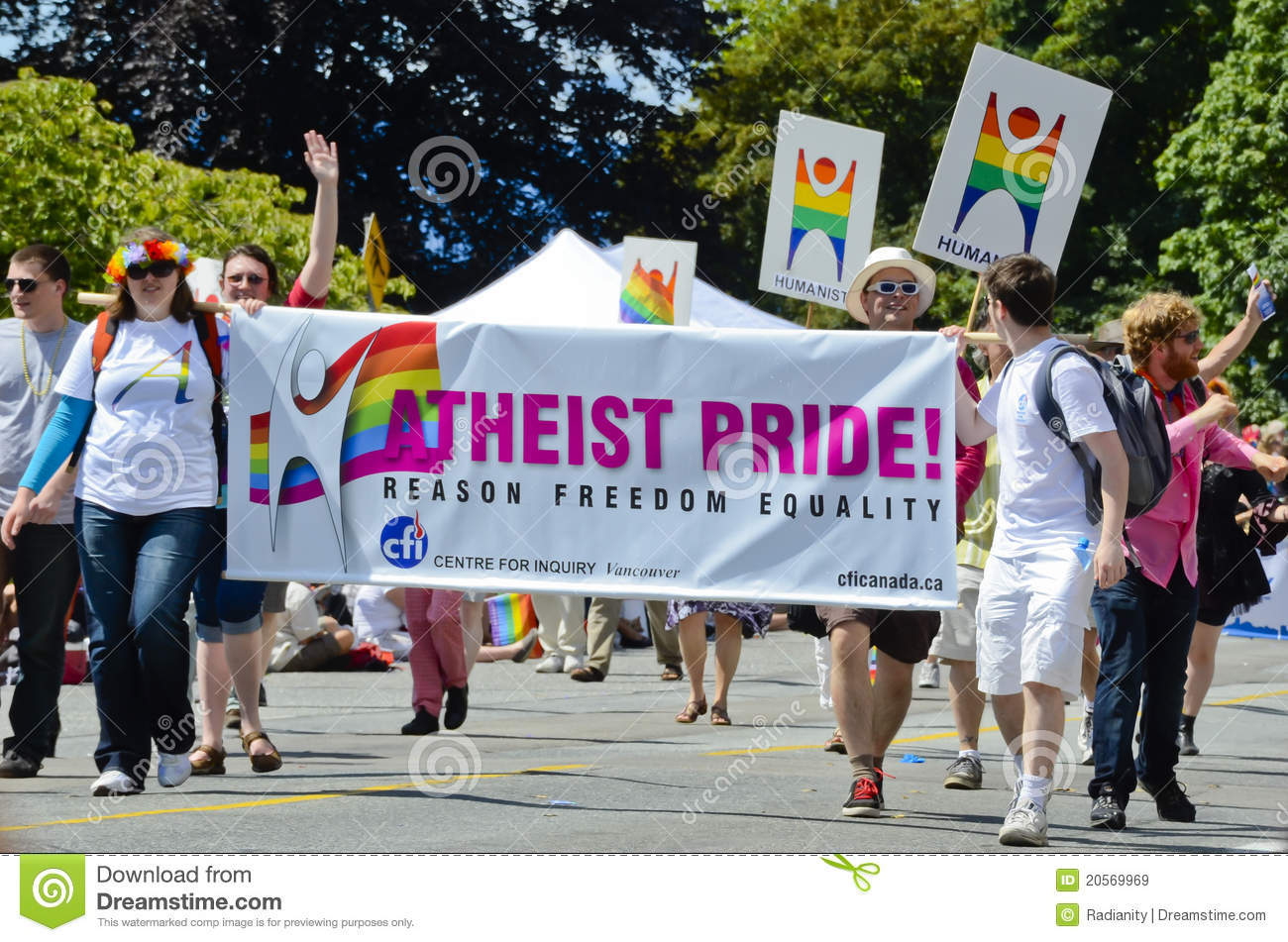 "Atheism isn't a religion" cries atheists as they display Atheist Pride banners.