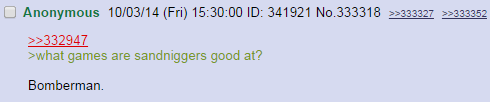 Repost of the day Flag internetexplain (See more...) next random - Fav Favorite Comment ✖ Top NextComment I forgot I even screen capped this until I found it. next Tags: 4Chan | 8chan | Jackie Chan Ll Anonymous (Fri) 15: 30: 00 ID: 341921 hito. 333318 ? vwhat games are *********** Quad at? Bomberman. ... +213 Views: 11994 Favorited: 8 Submitted: 10/14/2014 Share On Facebook -Favorite +Favorite Unsub from internetexplain Subscribe to internetexplain