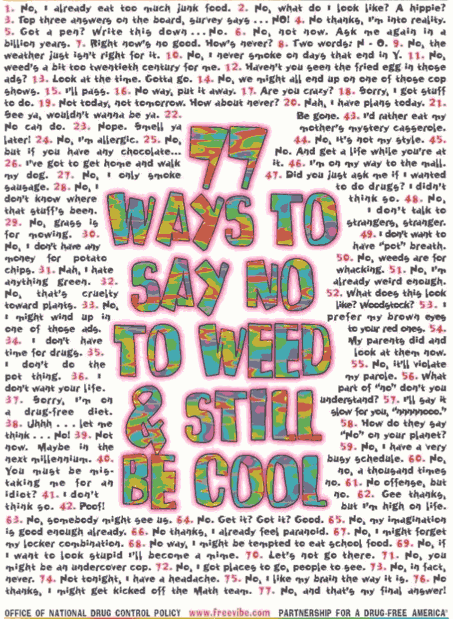 As a kid because of how much "say no to drugs" and "stop, drop and roll" was taught, I thought drugs and getting caught on fire was going to be a daily thing.